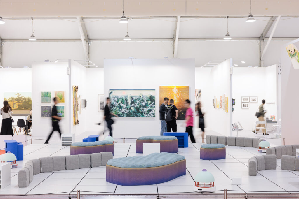 At the heart of Abbas’s two-decade-long practice is an interrogation of the image in an age of its omnipresence. Using modular forms, Abbas frees, interrogates, and reworks Branzi’s two-dimensional visions, breathing new life into their ambitious eukaryotic structures. The site-specific installation draws parallels between the movement of people in densely populated urban centers and the kinetic energy of crowds within an art fair.