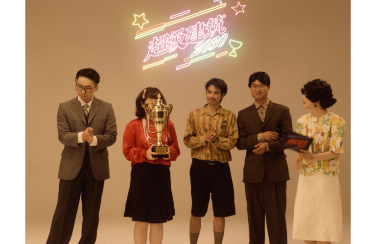 Hyper‑Architecture 2030 (2021) adopts the format of a televised talent show to construct a fictional reality programme set in the 1990s. Drawing on the spectacle‑driven aesthetics and performative tone of early mainland Chinese shows such as Zhengda Variety Show and Lucky 52, the work stages “shortlisted contestants” from different professional fields as they present their respective visions of life in 2030.