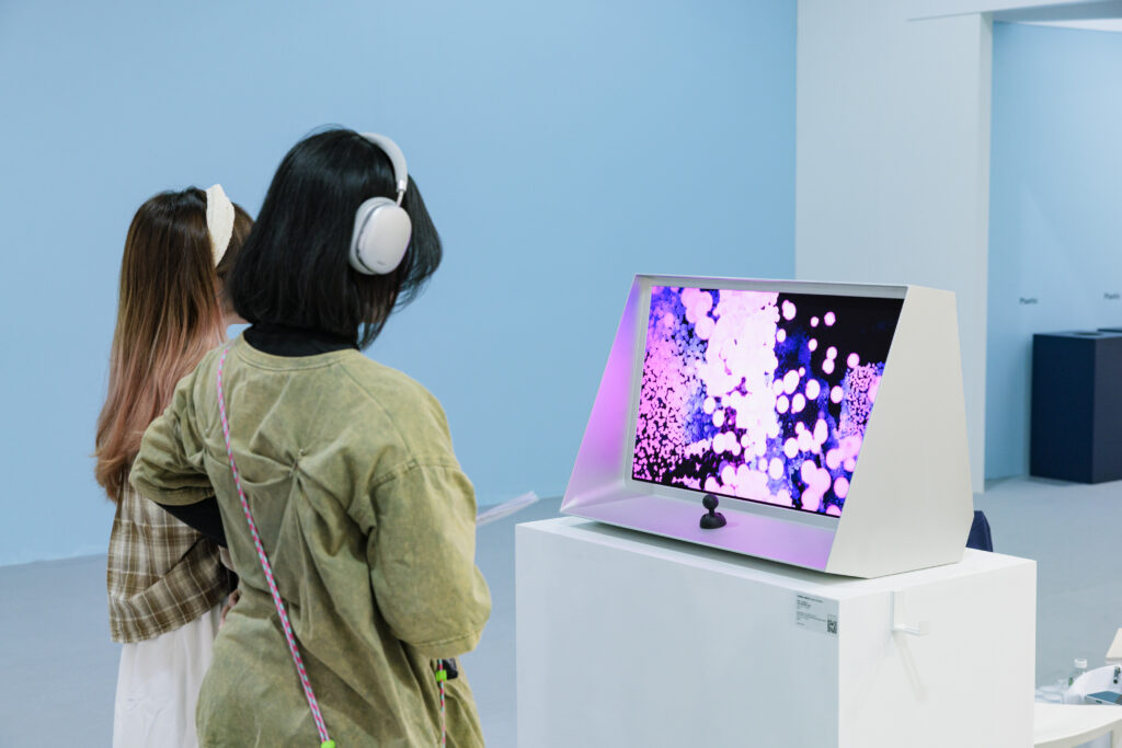 韓國藝術家 Eojin Lee 的作品《你和我們的圖騰》向為社會做出重大貢獻卻被邊緣化的勞動者致敬。 童年時,她目睹祖母使用薩滿教,為社區鄰居服務。 她從這段記憶中汲取靈感,利用自己的藝術探索其治癒靈魂的力量。 在一個新系列中,她回應了 2022 年發生的一起悲慘事件,當時韓國一家麵包店工廠的工人在操作機器時出現傷亡事故。事故中明顯缺失安全管理和勞工權利,驅使藝術家審視工作場所,尤其是工廠工人的尊嚴地位。這些思考促使藝術家用精緻的陶瓷和發現的物品創作薩滿雕塑,以此象徵著每個勞動者的精神存在,並與用於運送批量生產的商品的傳送帶並置。藝術家亦透過將薩滿薩爾普里舞蹈與人體塑像結合來創作數位繪畫,藉此隱喻低薪工人被迫讓渡的靈活性。