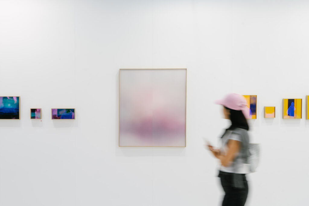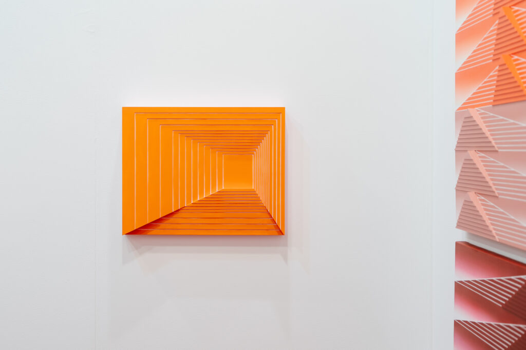 三位藝術家以嚴謹的探索方式,深入研究物理與視覺層面的結構條件如何介入並形塑我們面對圖像時的空間經驗,由此展開一場關於物質性、深度層次與感知方式的藝術對話。康罕善以傳統韓紙為核心創作媒材,透過拆解與重組的過程,將其轉化為抽象構形,為這一歷史悠久的材料在當代語境中開拓出嶄新的物質身份。Hong Mihee 的半雕塑式淺浮雕繪畫由層層堆疊的卡紙構建而成,生成介於圖像與物體之間的有機質感地貌;觀者移動視角的過程,便是喚起作品感知層次變化的開關。Hwang Do You 融匯東方筆法的即興韻致與西方抽象的構圖邏輯,摒除敘事與情感渲染,萃取每一道筆觸的色彩張力與觸感質地,營造出純粹洗鍊的抽象世界,蘊含濃縮而簡樸的內在力量。