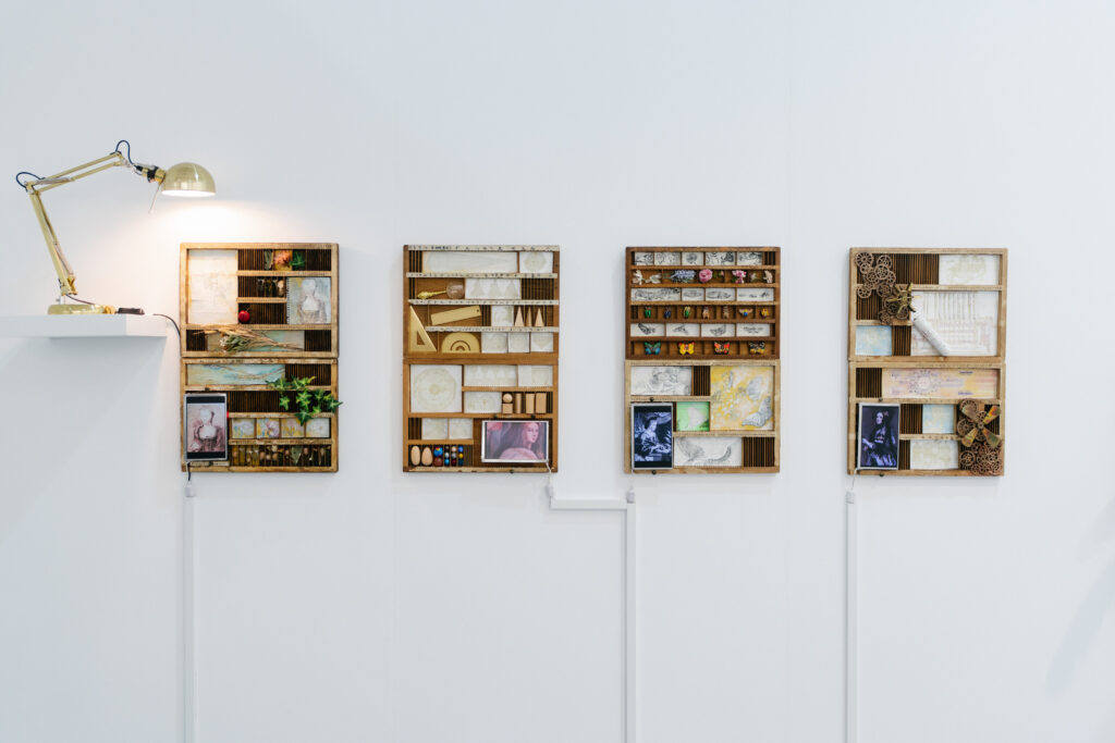 兩位藝術家透過女性視角探索情感的強度,將各自創作媒介的表象推向顯露及隱藏。Sookyoung Lee 的繪畫由色彩鮮明的線條與模糊的形狀構成,抽象形式間看似稚拙的互動蘊含著交流的可能,而平面的靜止則隱含著色彩重量外潛在的張力。Jaeeun Jeon 的靈感源於對祖母縫紉的童年回憶,她將布料、線、抽屜、木盒等日常材料融入作品中,建構新的符號與意義,並透過細緻而感性的組合,邀請觀眾探索自身的懷舊之情。